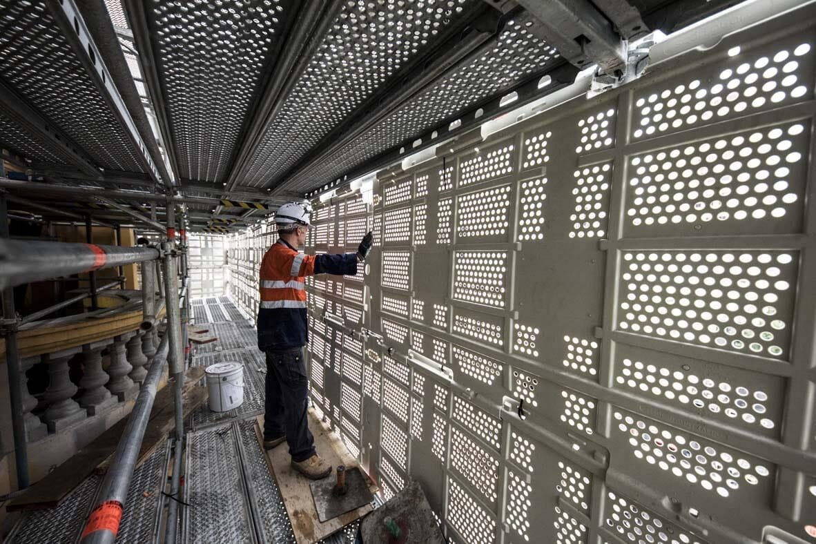 With 80-100 workers onsite, the works include replacing and resealing the new roof, repairing the parapets, inclusive of internal seismic stabilisation, and restoring the clock tower.
